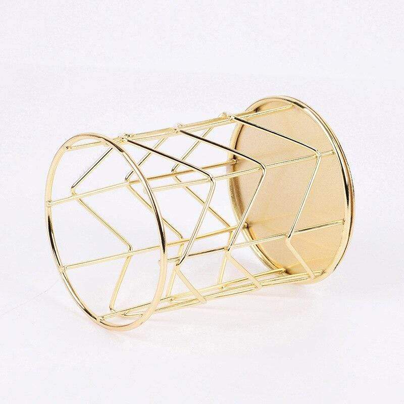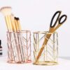 Denna vackra metallkruka, tillgänglig i guld och roséguld, är idealisk för att organisera dina sminktillbehör såsom dina borstar.
