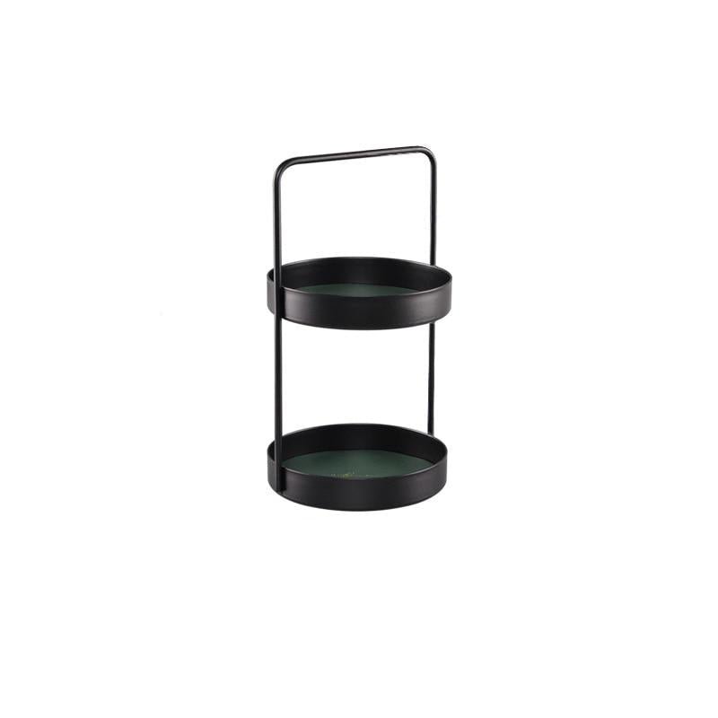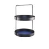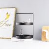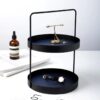 Denna hållare till skönhetsprodukter finns i två olika varianter. Varje variant är utrustad med två runda brickor: en med liten bas, och en med större bas. Denna smarta design gör det möjligt att ta bort den undre brickan för att använda den både som förvaringsutrymme eller som presentställ.