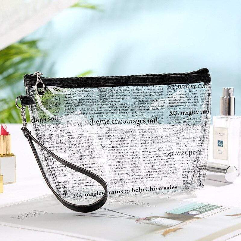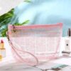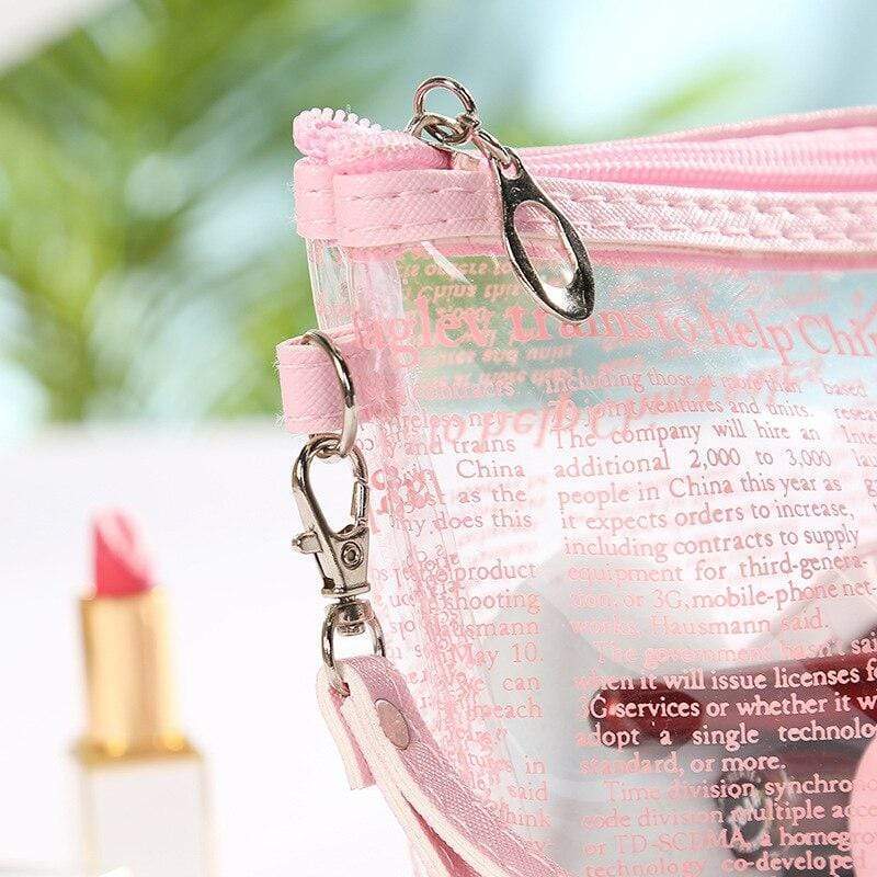Genomskinlig och rosa sminkväska