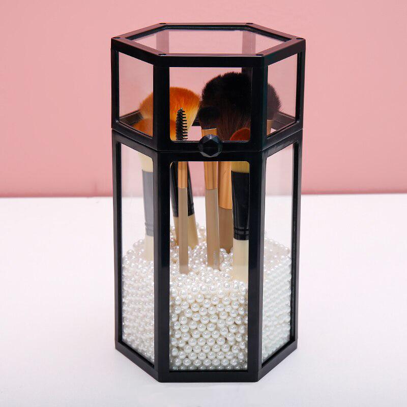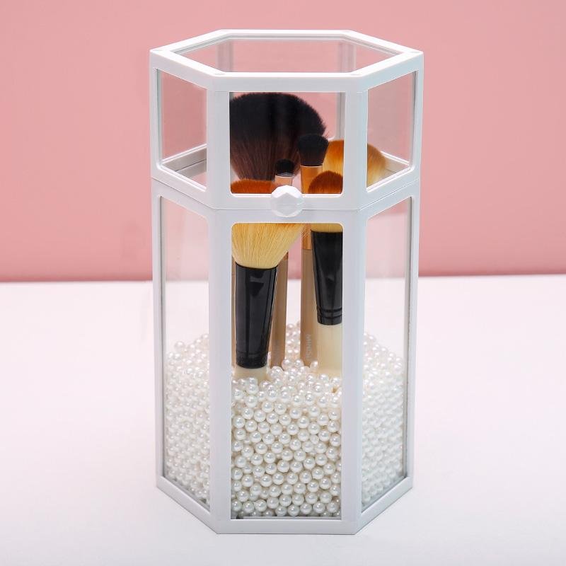 Denna transparenta kruka kommer att omvandla din sminkzon till en organiserad och raffinerad plats! Den kommer att ge en oemotståndlig touch av elegans.