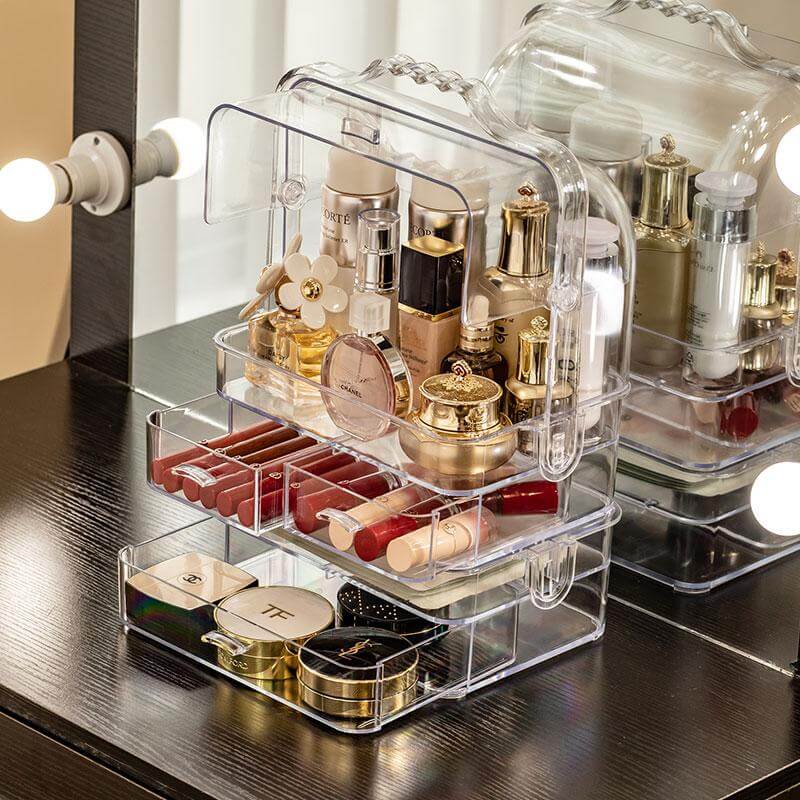 Presentera elegant dina skönhetsprodukter i denna lyxiga Transparent Sminklåda! Det kommer att spara dig värdefull tid för dina kommande sminkpass!