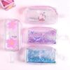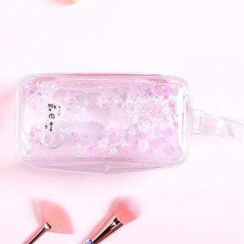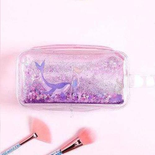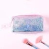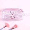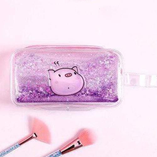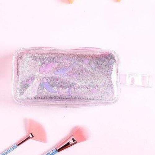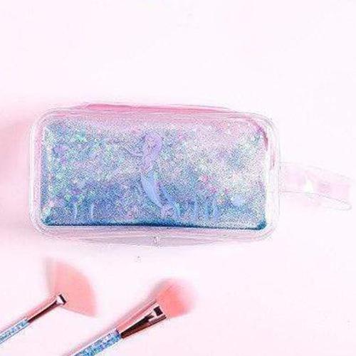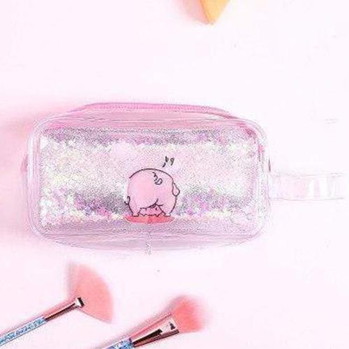 Denna sminkväska, likt många kvinnliga barnartiklar, överflödar av rosa, särskilt vid blixtlåset. Små flickor gillar också särskilt glitter och skimmer, som också är väl representerade. Gjord i transparent PVC, väskan är utrustad med ett litet handtag för enkel transport.