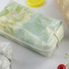 Denna sminkväska utmärker sig genom en särskilt unik design. Med sitt marmorliknande motiv lämnar den ingen oberörd. Praktisk och tillgänglig i flera nyanser som påminner om marmor, drar den blickarna till sig. Dess kompakta mått på 16 cm i längd, 6,5 cm i bredd och 7,8 cm i höjd gör det enkelt att lägga den i en väska. Dessutom är den tillräckligt rymlig för att rymma sminkborstar, förutom läppstift, foundations och andra kosmetikaprodukter.