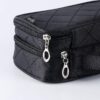 Multifickslådan är den ultimata reseaccessoaren för kvinnor. Den erbjuder gott om förvaringsutrymme för alla sminkprodukter: från mascara till paletter, ögonkrämer och mycket mer. Som namnet antyder är den uppdelad i flera fack eller fickor fördelade på tre nivåer, vilket underlättar organisering och åtkomst till dina kosmetika. Varje nivå separeras av ett blixtlås. Tillverkad i dubbel lager nylon tyg, denna rektangulära feminina förvaringslåda är 20 cm lång, 12 cm bred och 8 cm hög. Med en vikt på endast 150 g passar den perfekt med aktuella trender. Denna sminklåda innehåller också en fyrkantig spegel.