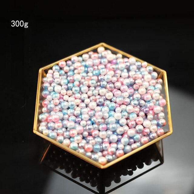 Sminkförvaring, dekorerad med vita och färgglada pärlor inuti, designad för att hålla dina borstar och sminkaccessoarer i upprätt position.
