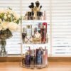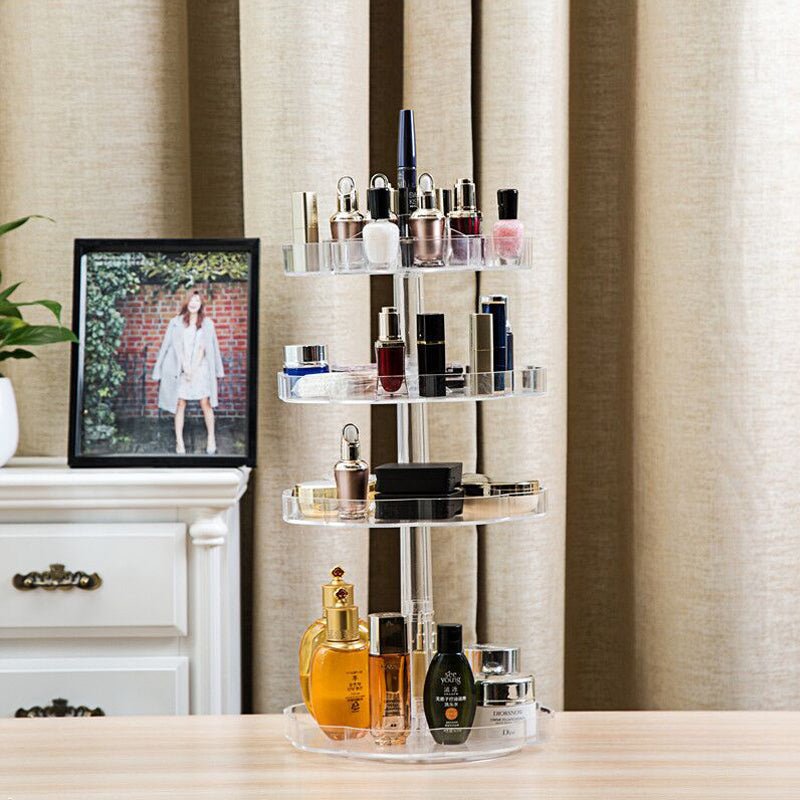 Sluta leta! Välj denna akryl sminkförvaring! Denna roterande torn på 360° finns med fyra eller tre nivåer, beroende på dina preferenser. Tillverkad i transparent akryl, ger den en omedelbar överblick över alla dina artiklar. Förutom att vara funktionell tillför den också en estetisk touch till varje badrum.
