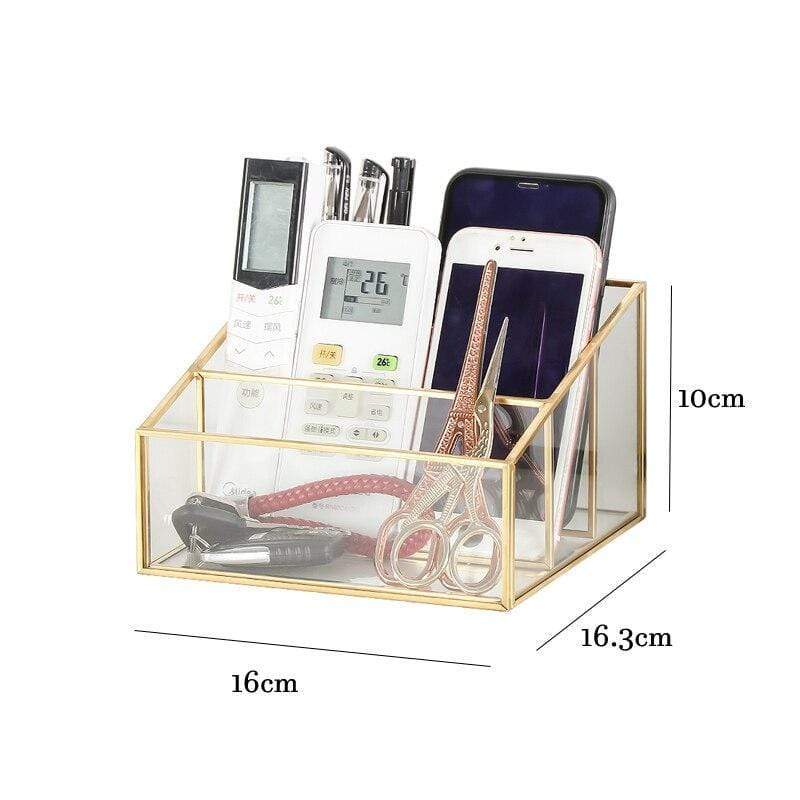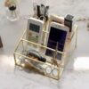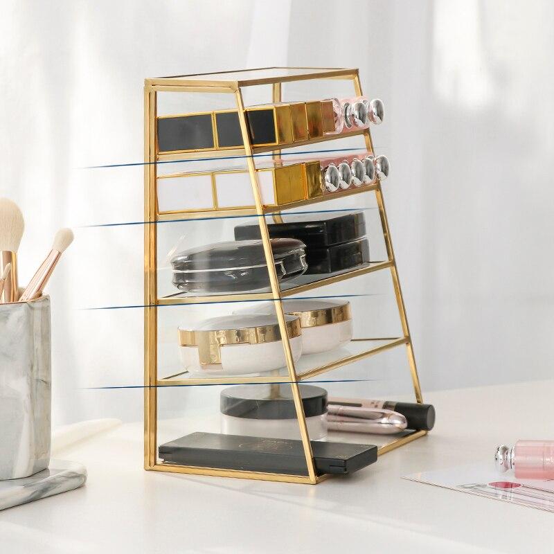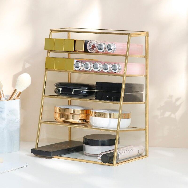 Elegant glashylla designad för smink, kan även användas som en visningsställning på ett skrivbord när den ligger platt.