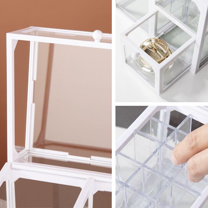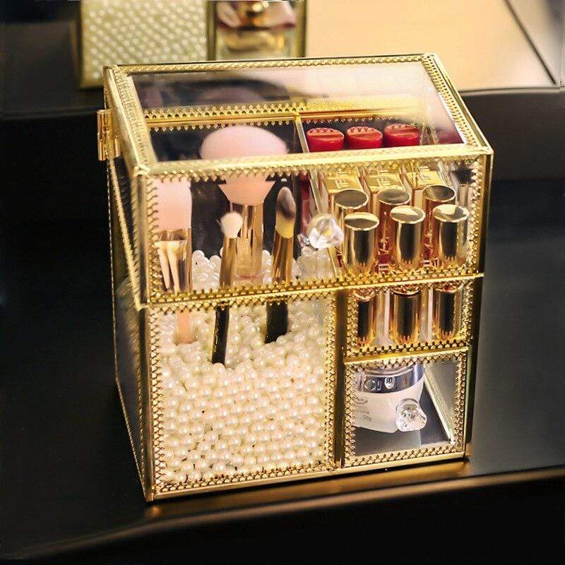 Denna sminklåda är idealisk för att organisera dina sminkprodukter samt dina tillbehör. Du kan till exempel lägga kulor i ett dedikerat fack för att hålla dina borstar på plats. Ett mindre fack gör det möjligt att snyggt placera dina läppstift, medan en liten låda är perfekt för att förvara dina små kosmetikaburkar.