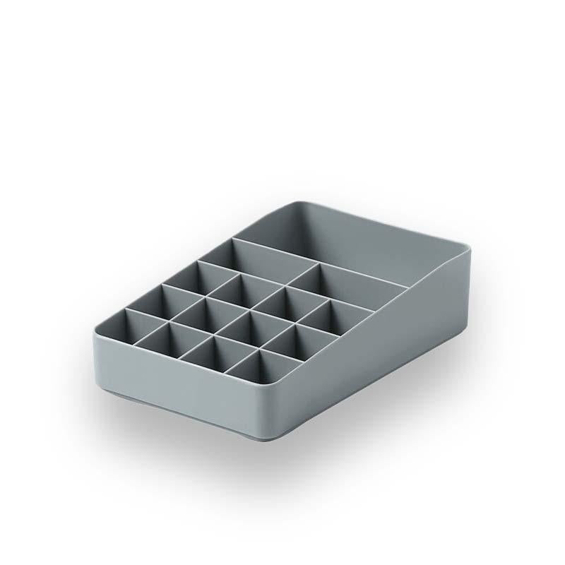 Om du ofta tappar bort ditt ögonbrynspenna, ditt rouge eller din mascara, är det hög tid att organisera dina kosmetika med denna sofistikerade förvaringslåda. Dess mjuka gråa ton harmoniserar med vilket inredning som helst, och dess kompakta dimensioner tillåter den att installeras diskret i ett hörn av ditt badrum eller ditt sovrum. Utrustad med flera små fack är denna organisatör perfekt för att samla och kategorisera dina sminkverktyg på ett och samma ställe.