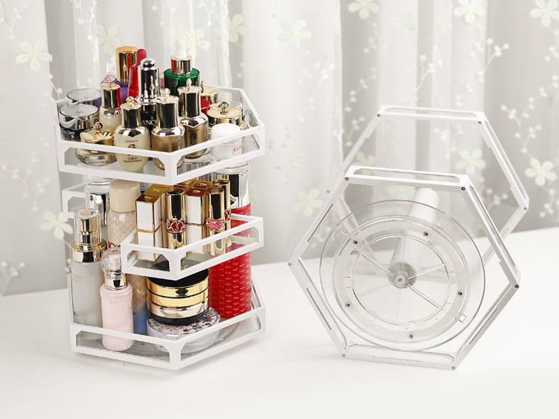 Letar du efter en både elegant och praktisk lösning för att organisera sminket ditt? Sluta leta, denna roterande sminkförvaring är precis vad du behöver!
