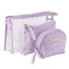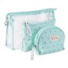 För alla dina behov av sminkförvaring är denna väska den perfekta följeslagaren. Det är en liten praktisk väska att bära med sig som är lätt att stoppa i ditt bagage eller din handväska. Den finns tillgänglig i 6 färger, vilket gör att den kan passa alla smaker. Designad med ett högkvalitativt och mycket hållbart kanvastyg, erbjuder den gott om utrymme tack vare sin uppsättning av 3 inbäddade delar, där den största är i PVC och de mindre i tyg.