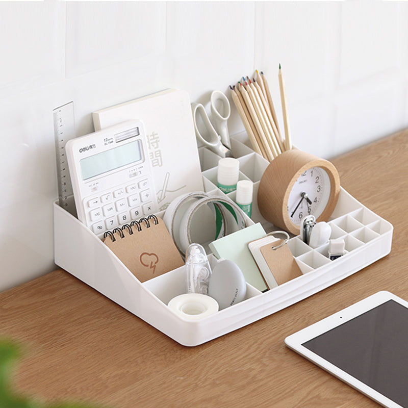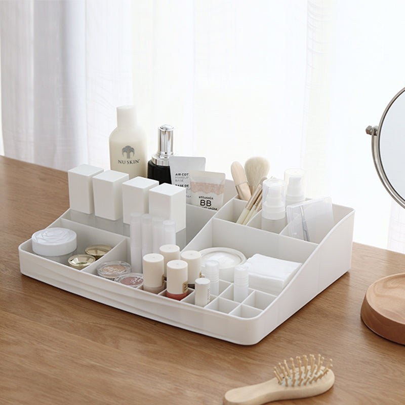 Designad i plast och utrustad med flera små fack, denna organisatör är idealisk för de som vill hålla sin sminkkollektion välordnad. Dess rena design smälter harmoniskt in i alla typer av inredningar!